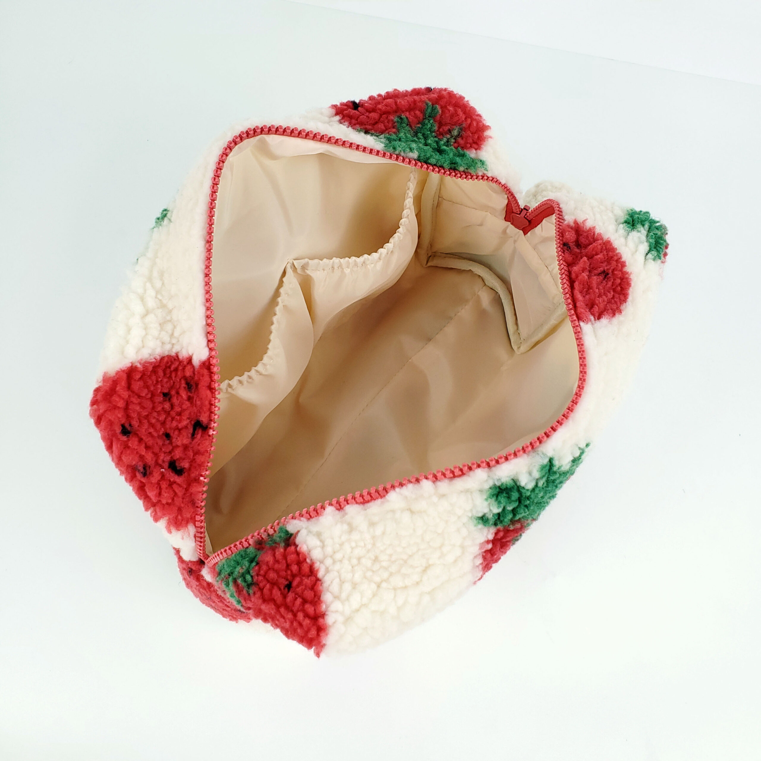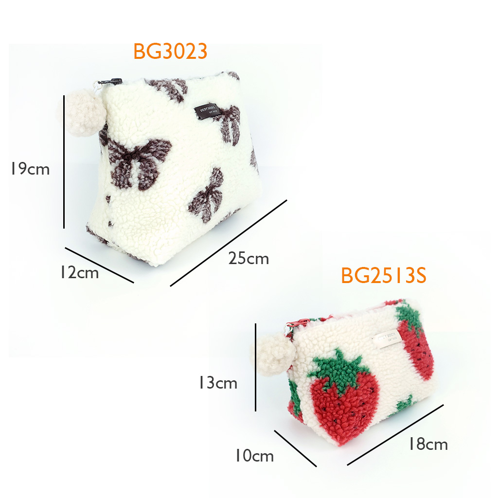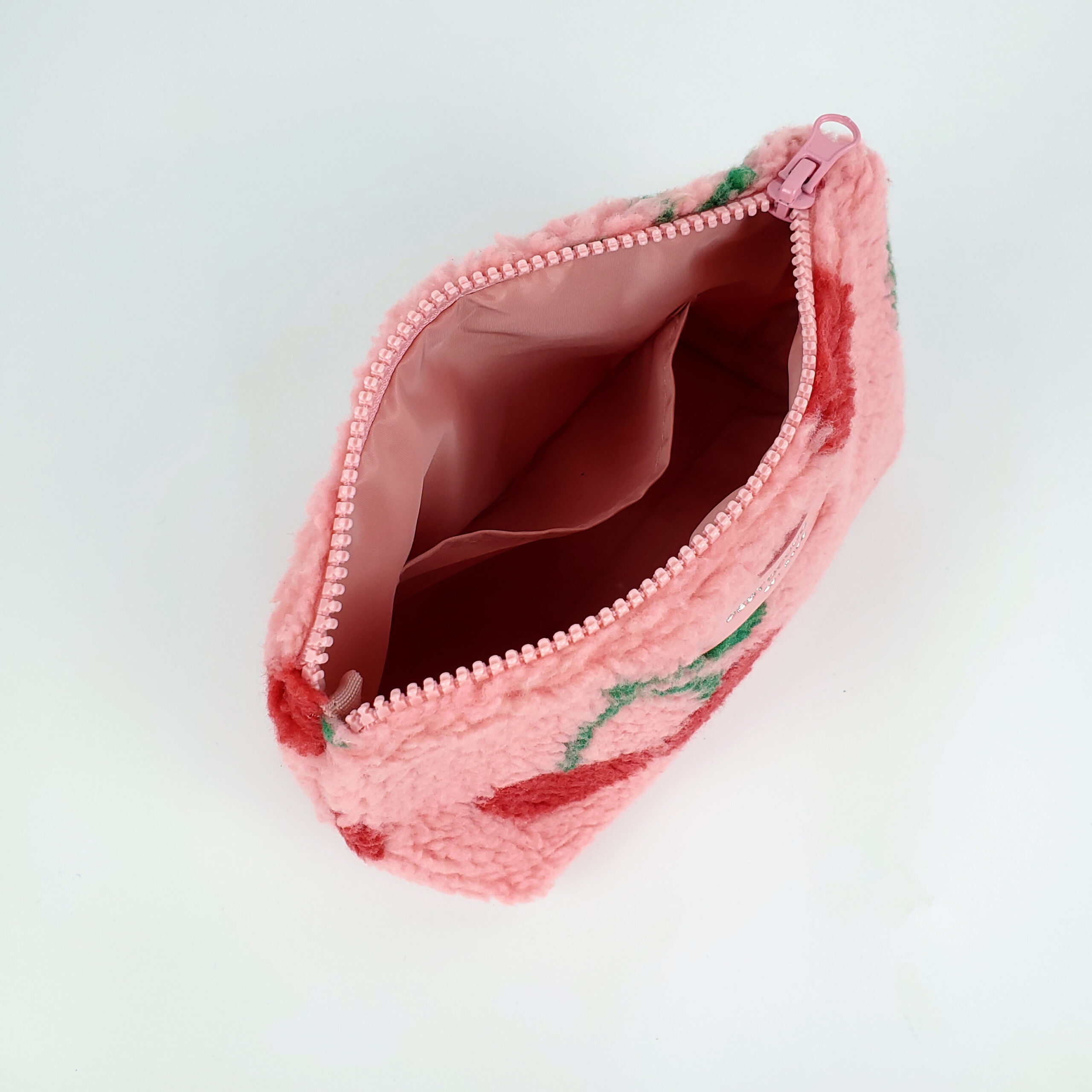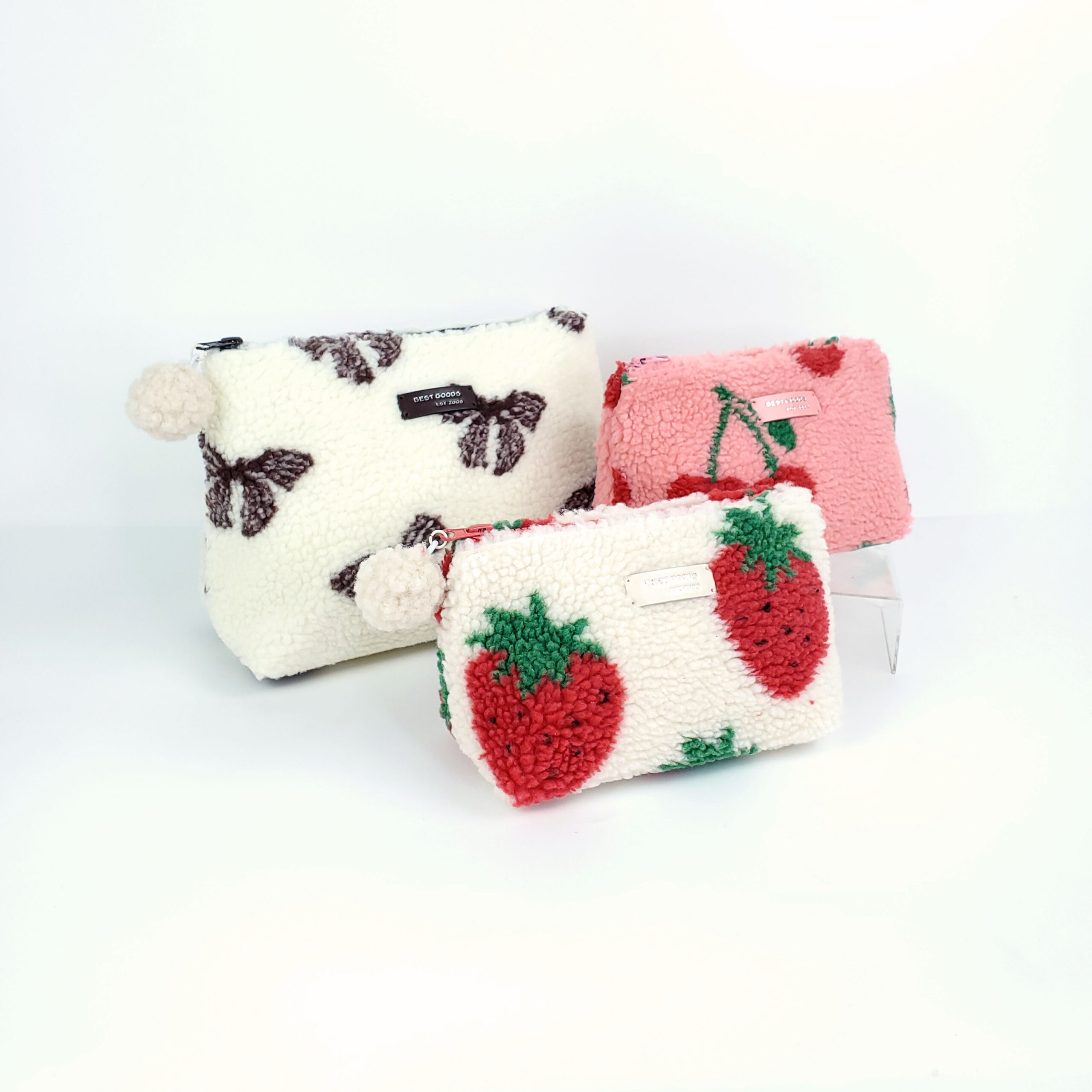 Elevate your beauty routine with this exquisite teddy velvet cosmetic bag. Boasting a new design, it blends pink cute aesthetics with trendy strawberry leopard print, while the fluffy texture adds a luxurious touch. Available in any sizes for versatile use, and customizable with your own label or logo—both stylish and practical for everyday carry or travel.